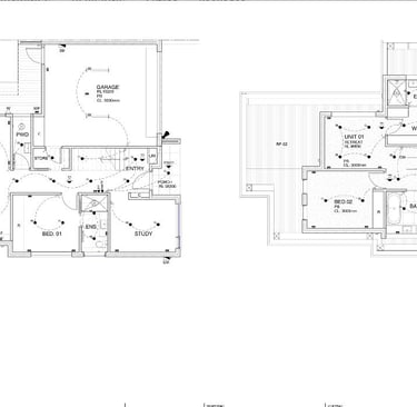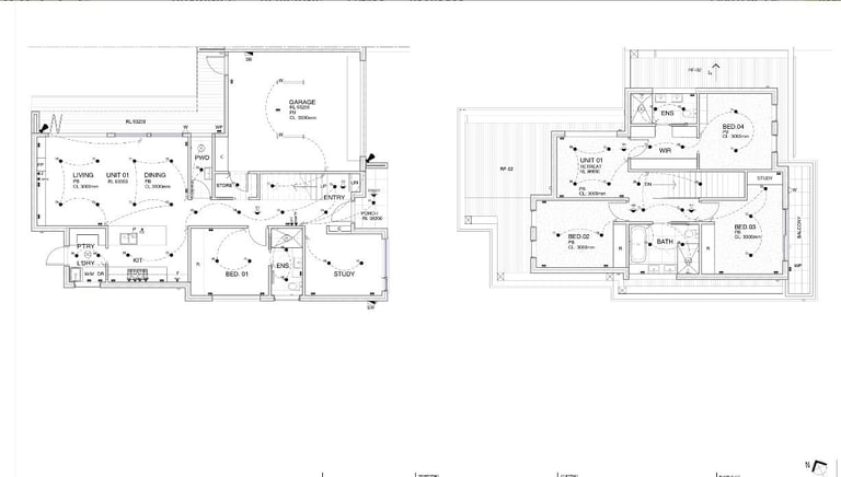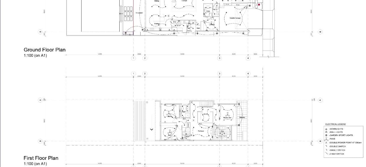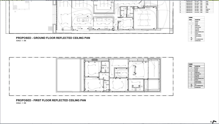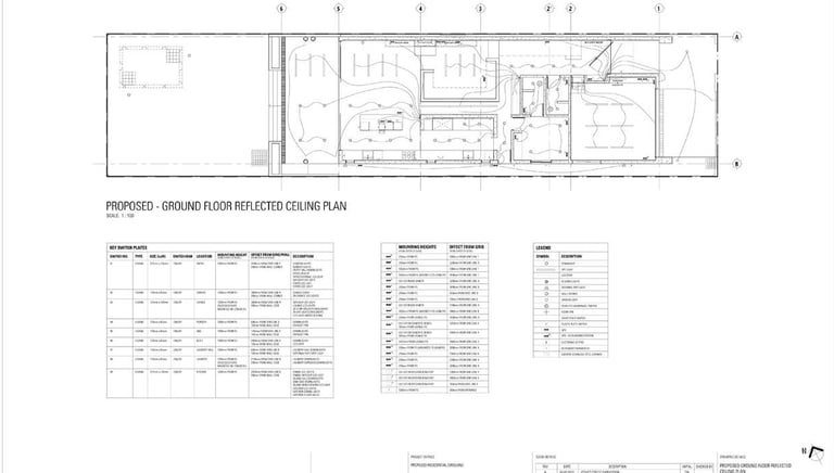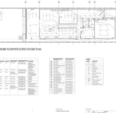 Showing all visible objects located on the ceiling, electrical and lighting layout and electrical circuits.